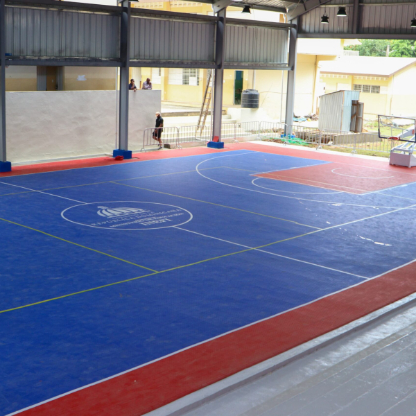 tableros y aros, mejoras de iluminación, reparación de gradas/alambradas y