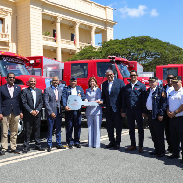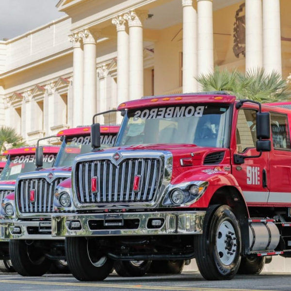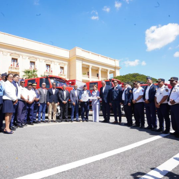 frontal del Palacio Nacional para entregar 12 camiones de bomberos de respuesta